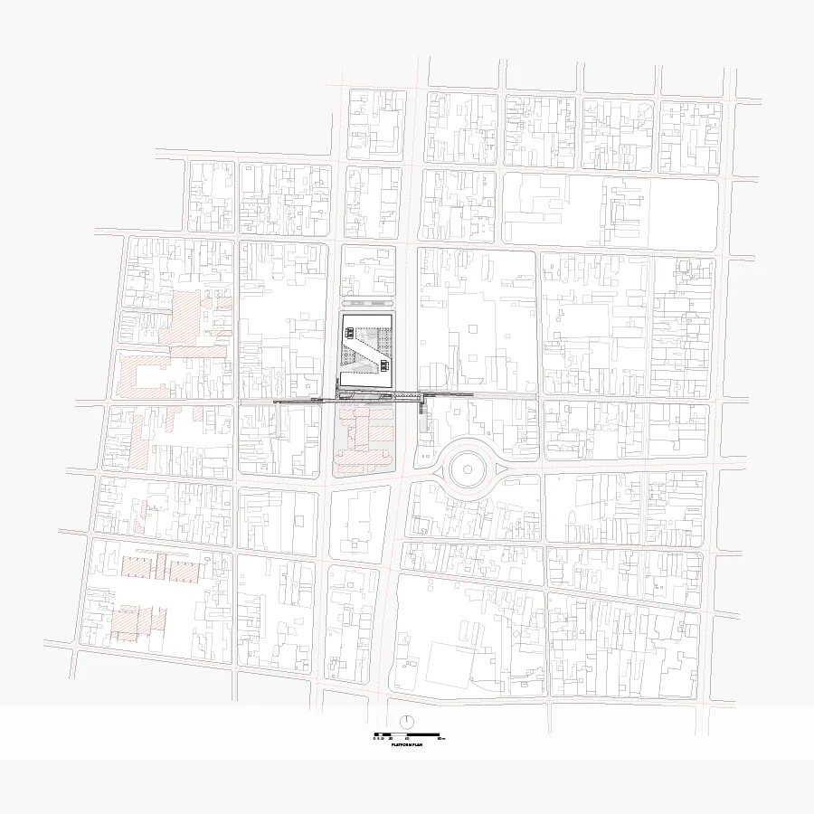 By connecting the subway entrance and proposed bus terminal on the underground level, a commercial complex was in turn proposed as the catalyst program. A central courtyard is designed for the maximum vertical connection with the ground floor. This in turn enables a commercial sunken plaza, instead of a completely isolated underground one.